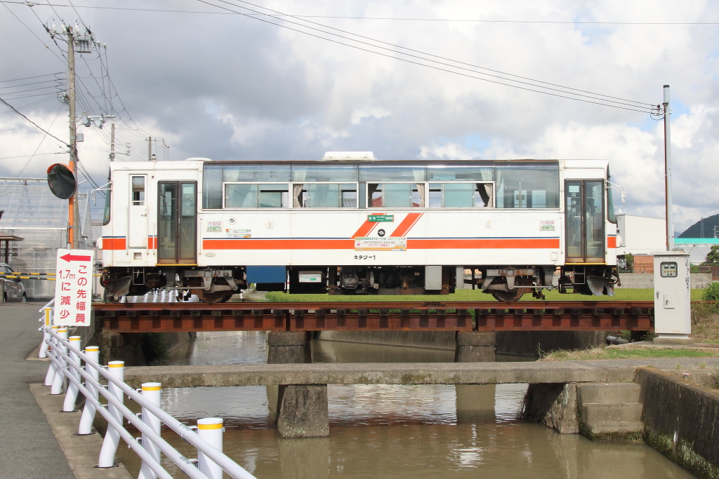 で、ここまで、正面がちに撮っていたのですが、やはり2軸車であることを強調した、側面がちの画像が撮りたくなり、学門駅の横を通り、線路沿いを歩いて行くと…あ、御坊駅近くまで出てしまいました。